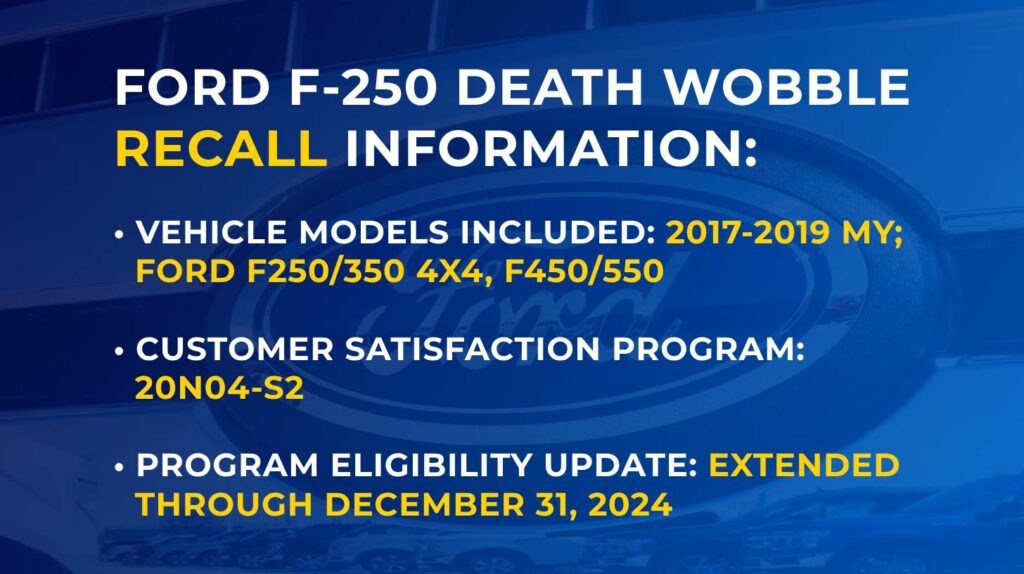Owners of certain Ford pickup trucks need to be aware that the notorious death wobble recall affects particular models. Specifically, F-250 and F-350 trucks from the 2017 through 2019 model years have been flagged for this steering issue.